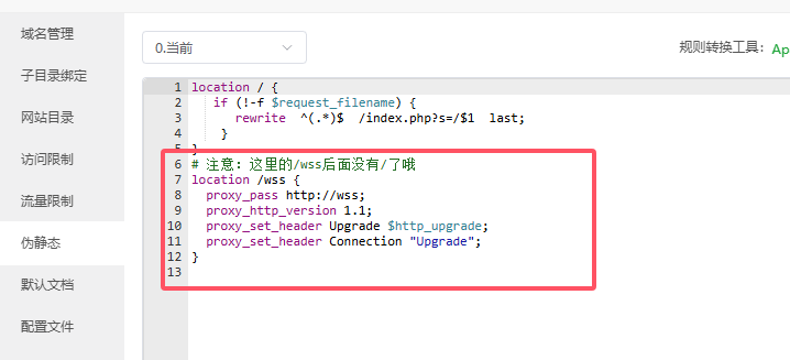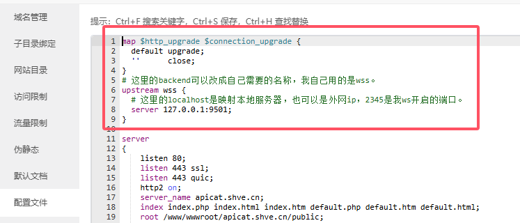 # 这里的backend可以改成自己需要的名称,我自己用的是wss。
